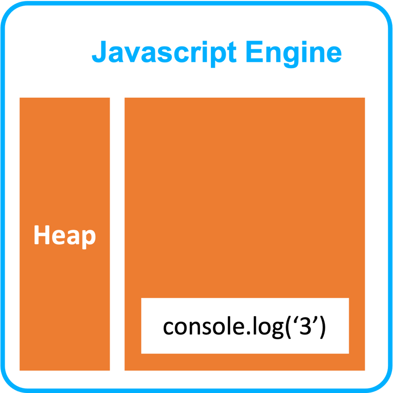 곧바로 console.log('3')이 콜 스택에 쌓인다. 비동기 작업이 없기 때문에 그대로 실행되고, 콜스택에서 제거된다.