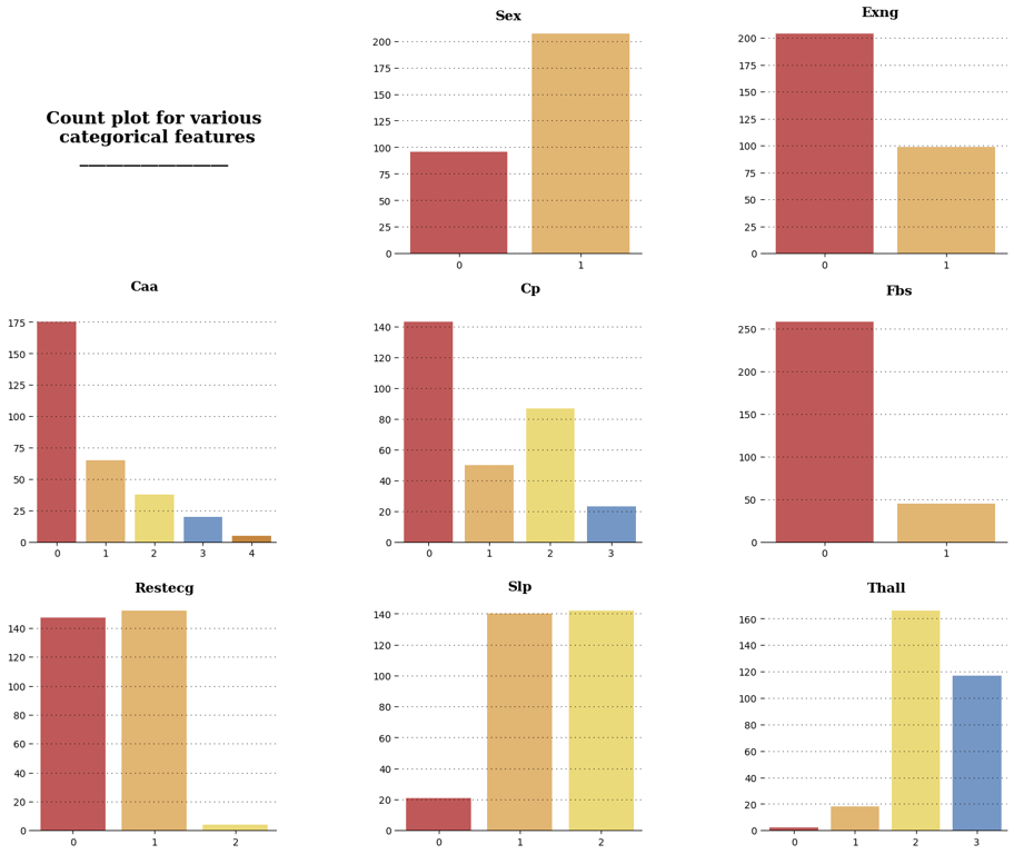 The categorial cols are : ['sex', 'exng', 'caa', 'cp', 'fbs', 'restecg', 'slp', 'thall']