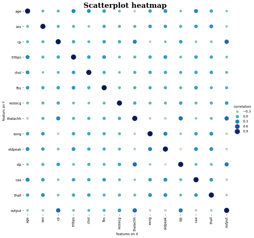 - 산점도, 히트맵 행렬은 output과 cp, thalachh, slp 사이에 아마도 상관관계가 있다는 것을 암시한다.