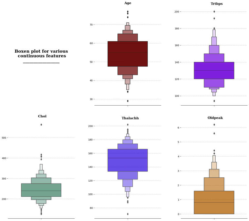 ax8.text(0.5,0.5,"Boxen plot of\nthalachh wrt\noutcome\n_______",